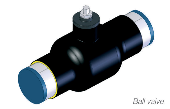 Pre-insulated isolation valves can be installed at any point in the pre-insulated pipe system and are installed onsite when the pipe is laid. These valves withstand a working pressure of 25 bar.